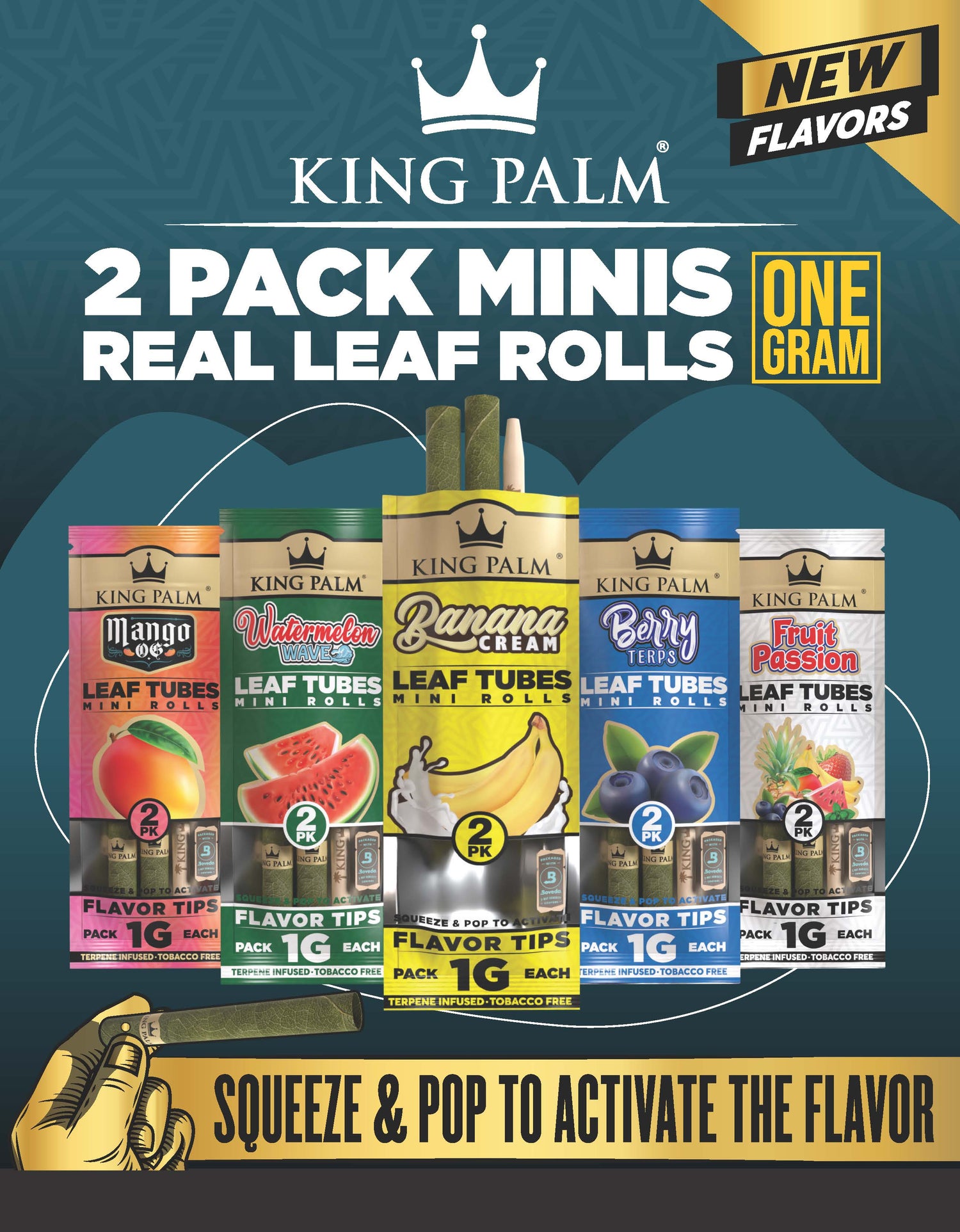 King Palm offers a diverse range of flavors designed to elevate the smoking experience with a variety of aromatic and fruity notes. Their flavor collection includes popular choices like Mango Tango, offering a sweet and tropical twist, and Banana Cream, which provides a smooth, creamy essence. For those who prefer a refreshing touch, the Watermelon Wave and Pine Drip flavors deliver crisp, juicy undertones. King Palm also features the Berry Terps, with its rich, berry-infused profile, and the Magic Mint, perfect for a cool and invigorating smoke. Each flavor is crafted to provide a unique and enjoyable experience, catering to a wide array of taste preferences.