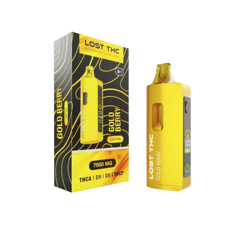 The Lost THC V2 Gold Edition 7.5 Disposables comes with 7.5 grams of a blend of THCA, Delta 9 THC, Delta 6 THC, and THCP. It has an advanced interactive display and features a vape time per pull, voltage level, battery life indicator, oil life indicator, and a clogging-resistant preheat function. Although the Gold Edition uses the same cannabinoids as other products from LOST THC, this collection features strains with the word gold in their name. You’ll find unique flavors in the Gold Edition.