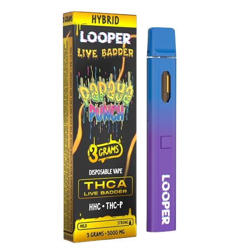 Experience next-level vaping with the Looper Live Badder Disposable 3G, packed with THC-P and HHC Diamond Live Resin Badder for bold effects and smooth flavor. With 3 grams of premium concentrate and zero fillers, it’s pure, potent, and lab-tested for quality you can trust.